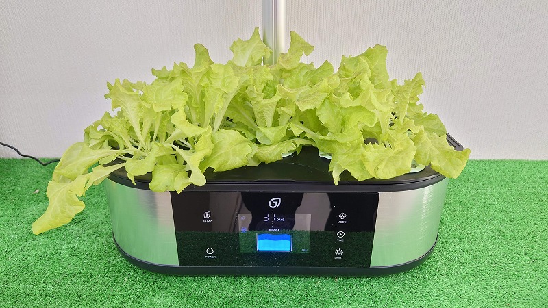 事務所に設置した水耕栽培キットで、サニーレタスを育てること31日。ついに、豊作を迎えました!